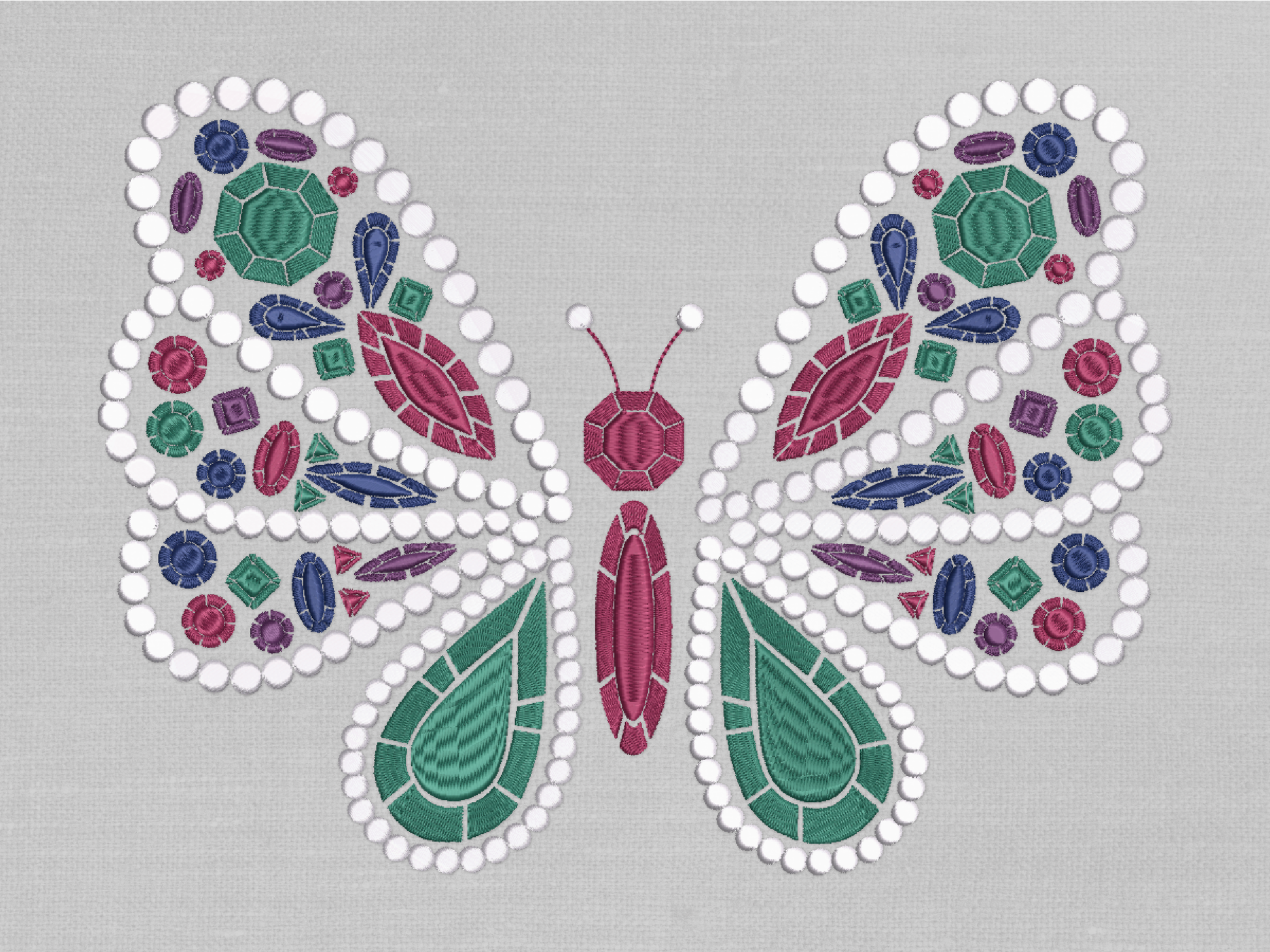 Elevate your next project with this gemstone butterfly machine embroidery file. Inspired by the beauty of nature and precious stones, this design is perfect for adding a sophisticated touch to tote bags, sweatshirts, jackets, kitchen linens, and handmade gifts. Create polished, professional-looking embroidery with an instant-download file made for makers who love gemstones and pearls.