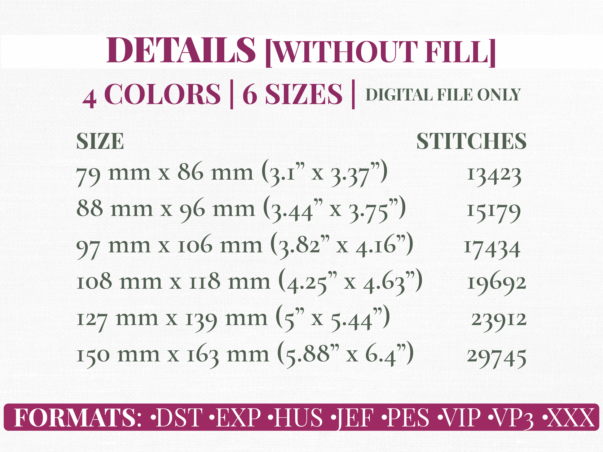 💾Formats included: DST, EXP, HUS, JEF, PES, VIP, VP3, XXX