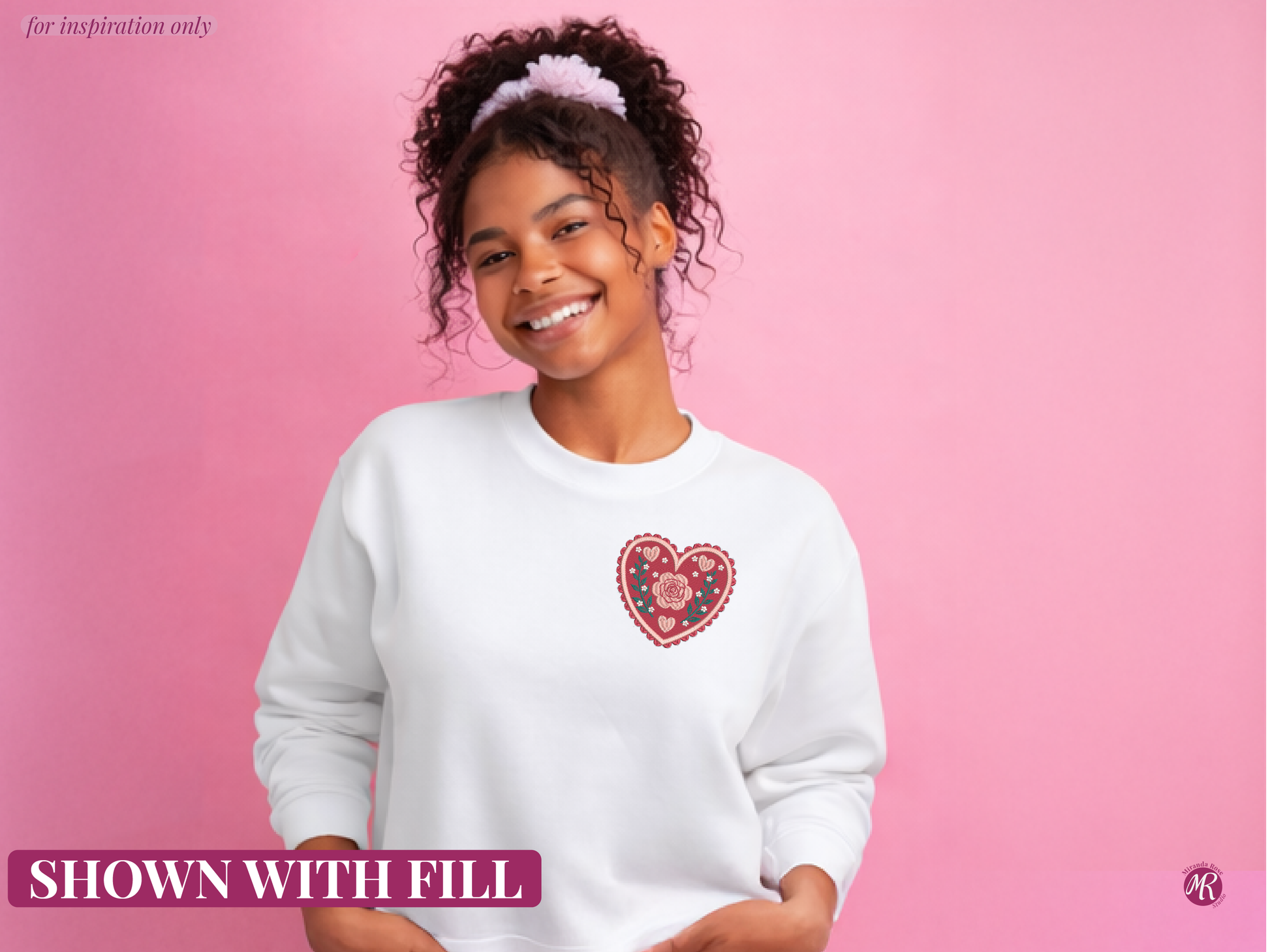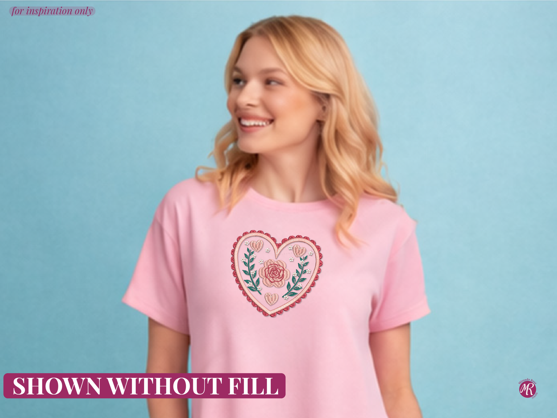 Elevate your next project with this Boho Heart machine embroidery design. Inspired by vintage folk art, boho Valentine’s motifs, and 70s hippie florals, this design is perfect for adding a romantic, heirloom touch to sweatshirts, denim jackets, tote bags, tea towels, pillow covers, quilt blocks, and handmade gifts. Choose your preferred look with two variations: one with a fill-stitch background for a bold statement, and one without fill for a lighter, more open stitch-out. Create polished, professional-looking embroidery with an instant-download file made for makers who love vintage, boho, folk-art romance.